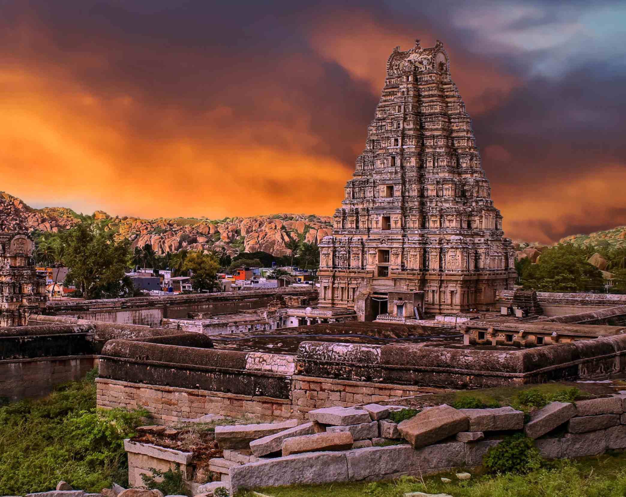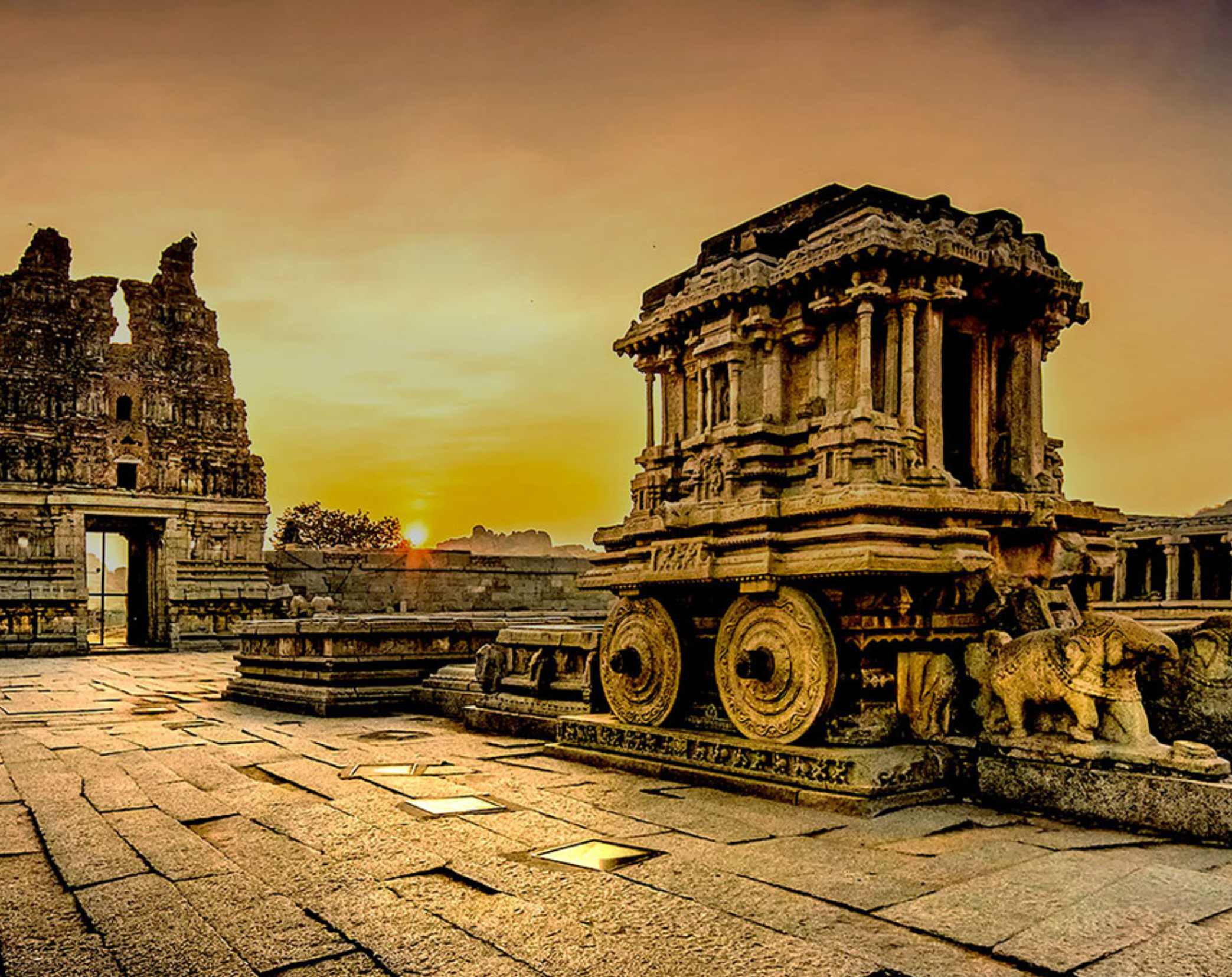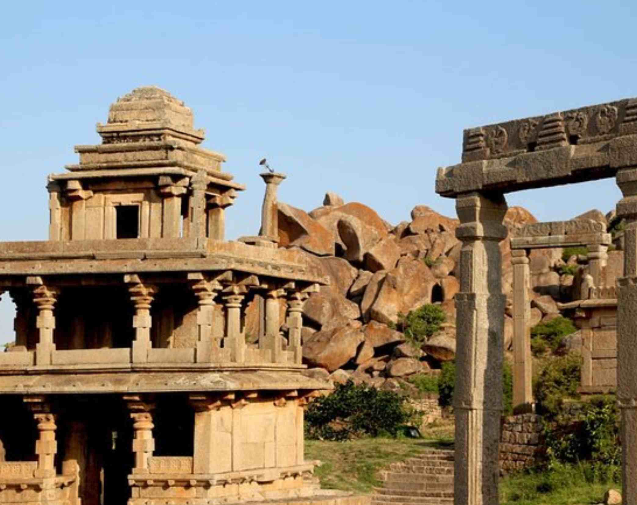 HAMPI: Virupaksha Temple, Vittala Temple, Lotus Mahal, Elephant Stables, Queen’s Bath, Hampi Bazaar, Hippie Island, Yantrodharaka Hanuman Temple, Matanga Hill, Ganesh Temple.